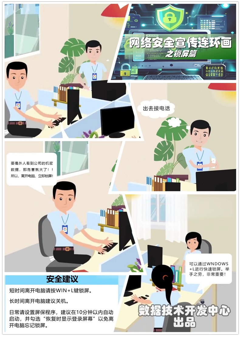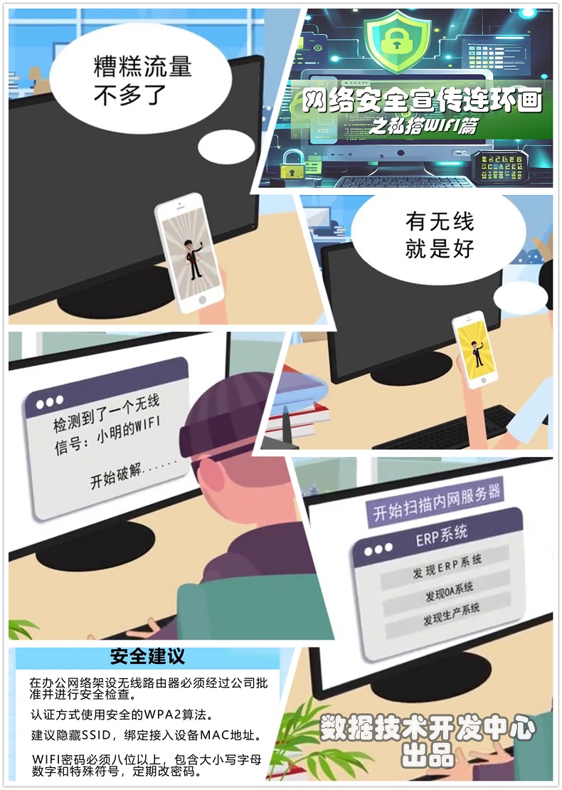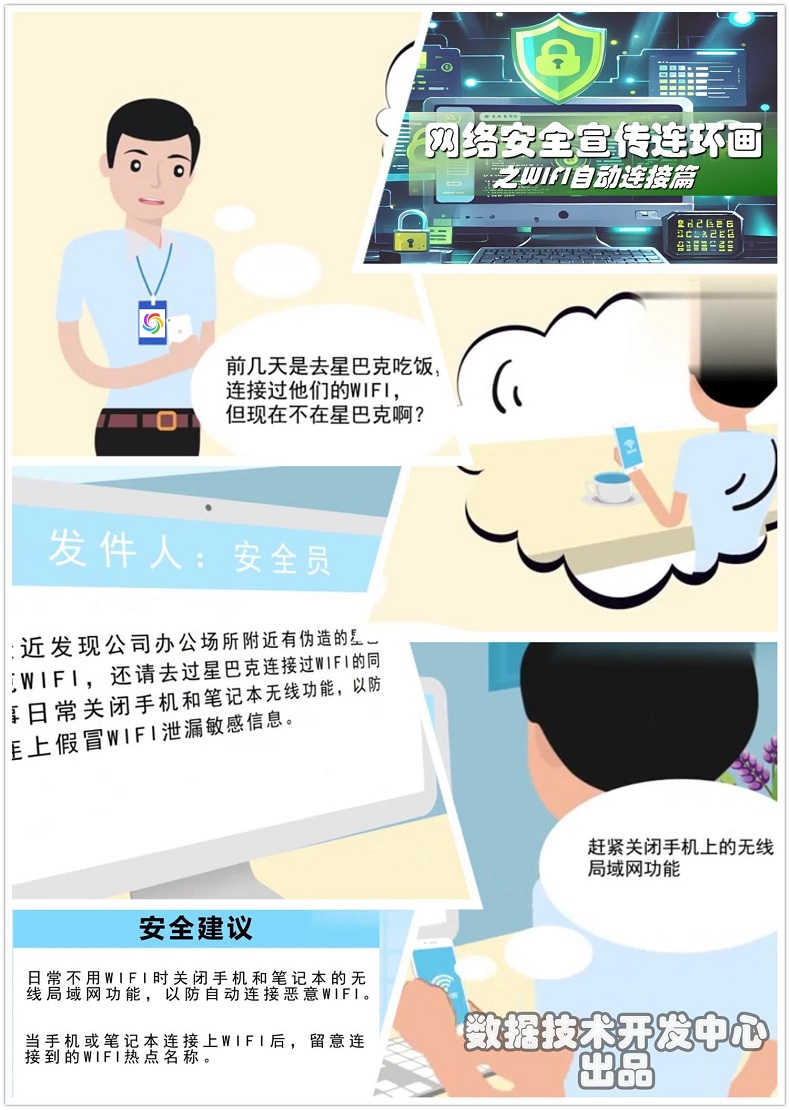 在网络安全越来越受到重视的今天,身处网络之海有哪些注意事项,怎样避防安全风险?免费wifi须当心,密码修改要定期,可疑链接不要点,杀毒软件勤更新……数据技术开发中心推出安全上网 六招助你排雷特别策划,助推集团干部、职工提高网络安全意识,更好运用技术和法律武器,携手扎紧网络安全篱笆。
